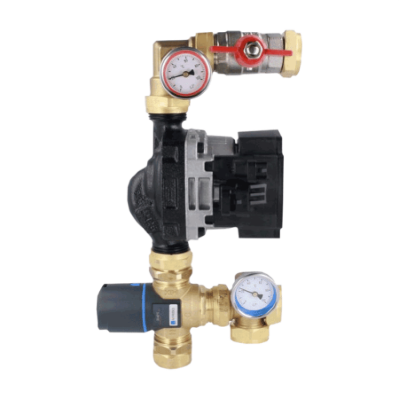 Смесительный узел для коллектора тёплого пола 20-43С от компании Afriso предназначен для регулирования температуры в системе теплого пола. Он обеспечивает равномерное распределение горячей воды по всем контурам пола, что позволяет создать комфортный микроклимат в помещении.